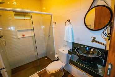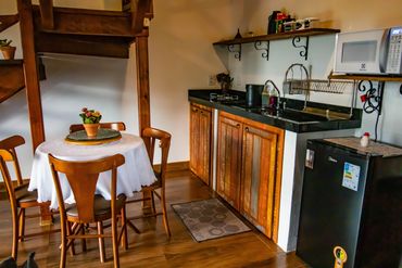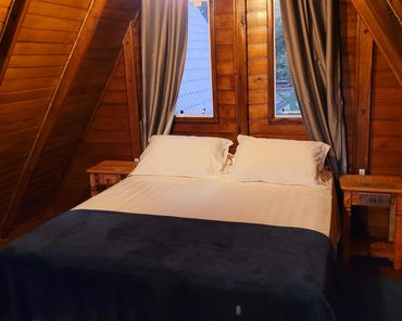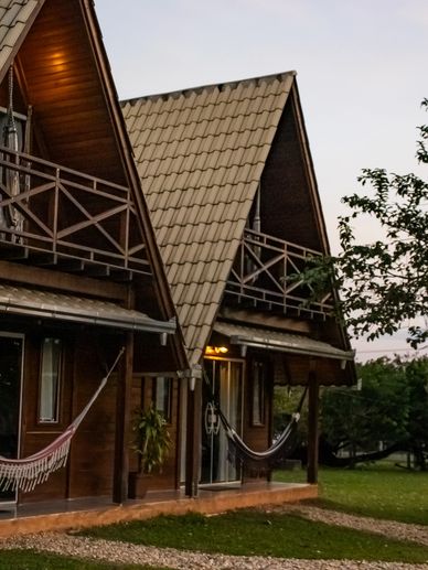 Os Chalés 4 e 5 ficam um ao lado do outro, porém não tem conexão interna, como são um pouco maiores são os únicos que acomodam até 7 pessoas. Chalés com cozinha completa, rede na varanda, Smartv e ar condicionado frio. Esses não tem churrasqueira nem lareira, mas tem um quiosque com churrasqueira à disposição. Ideal para grupos/famílias que buscam opções para ficarem próximos.